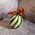 Подсвечник изготовлен из стеклянного шара с зелёными полосками, напоминающими традиционную рождественскую конфету.