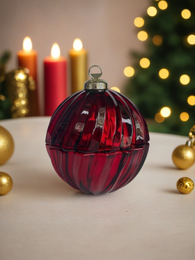 Роскошная новинка 2026 года свеча в стеклянной шкатулке в виде винтажного ёлочного шара. Объем свечи 180 мл, время горения более 30 часов. Внутри подсвечник покрыт блестящим гальваническим слоем и будет волшебно переливаться в язычках пламени. Окунитесь в атмосферу роскоши и волшебства.